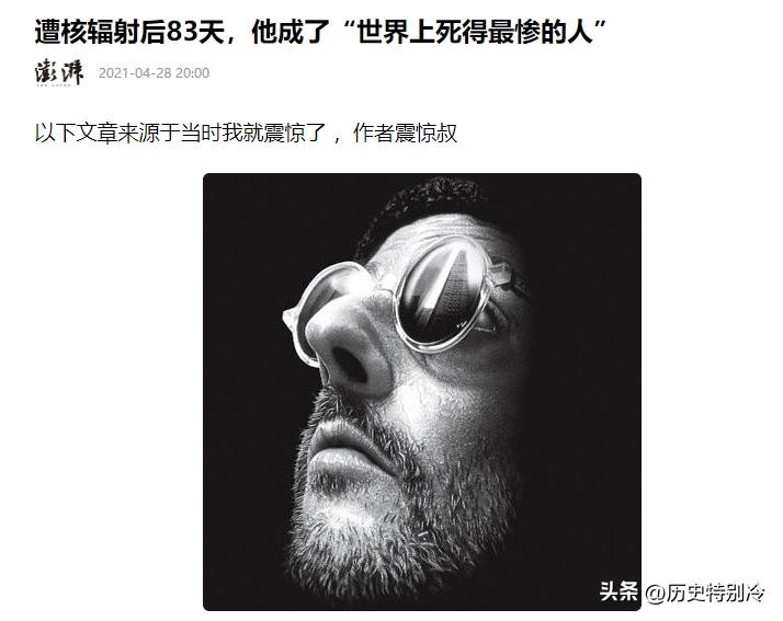 澎湃新闻:2021年4月28日,《遭核辐射后83天,他成了“世界上死得最惨的人”》