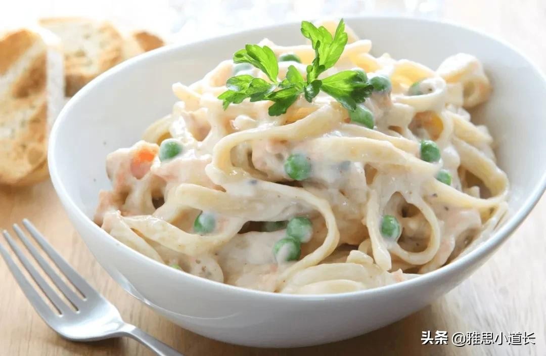 最有名的搭配就是白酱宽扁面(Alfredo fettuccinie)啦!另外,喜欢奶油菌菇汤的人,通常都是白酱爱好者。