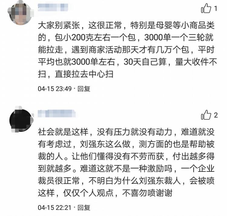 关于京东“取消底薪”、大幅提高揽件提成的举措,网友们的讨论也相当激烈。