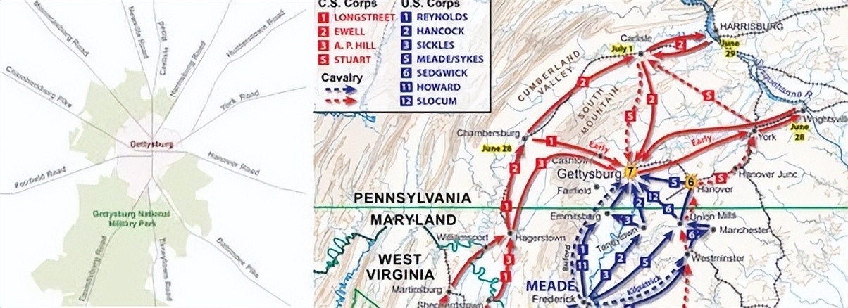葛底斯堡市位于该地区许多道路的十字路口,是一个潜在的交通枢纽和“两军会合的便利地点”。
