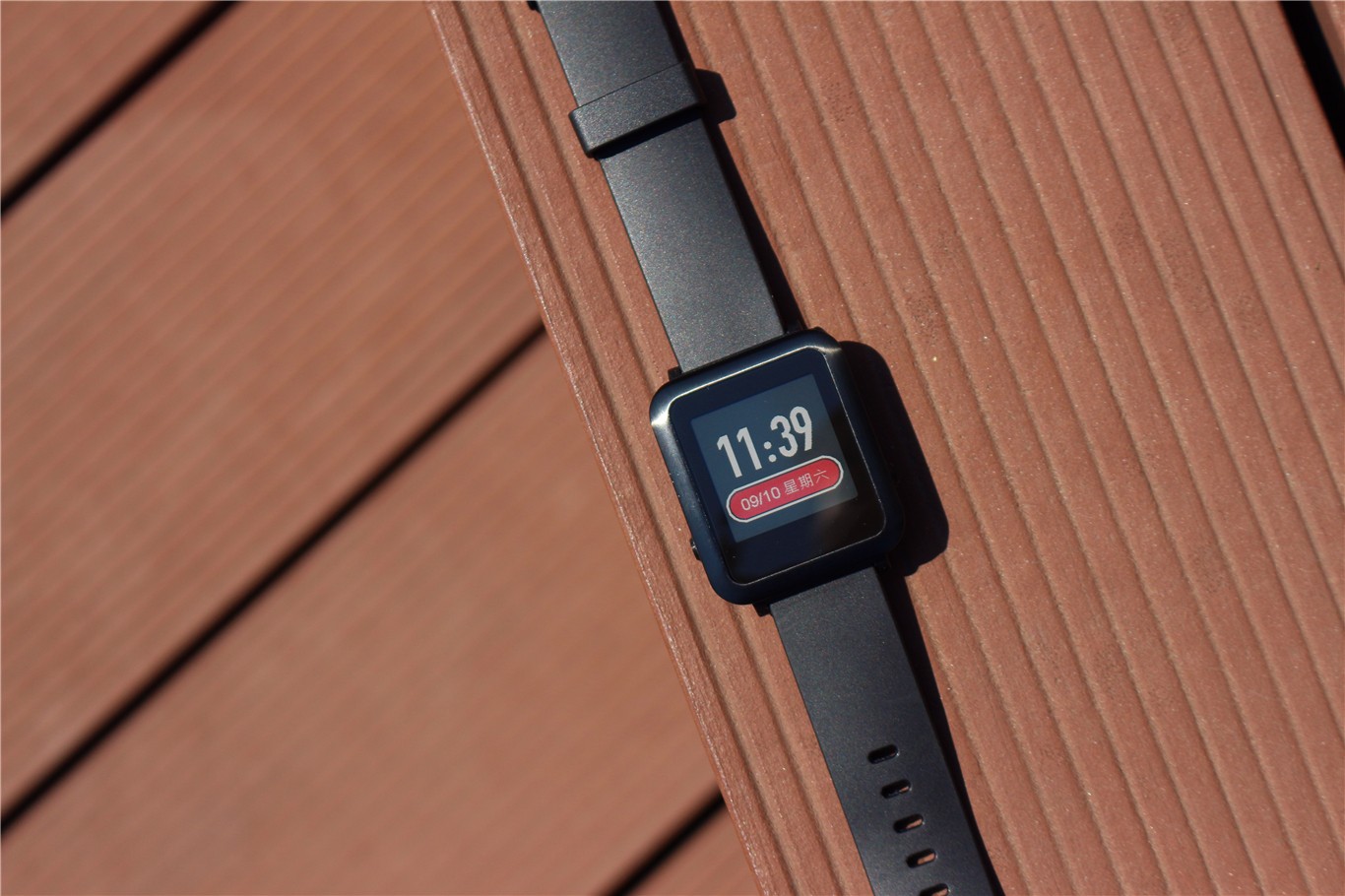 说起小黑系列的这款显示屏,不禁让人“又爱又恨”,它采用的是一种半透半反射的显示技术,业内将其定义为 Memory LCD,正是这种技术实现了在没有背光的前提下也能过看清楚屏幕的内容,神奇的是室外光线越强越能够看清屏幕内容,但是处于光线较暗又没有背光的环境中那就尴尬了,好在小黑3可以支持指定时间段,抬手点亮背光。(此文所有小黑3照片均在正午阳光直射下拍摄)