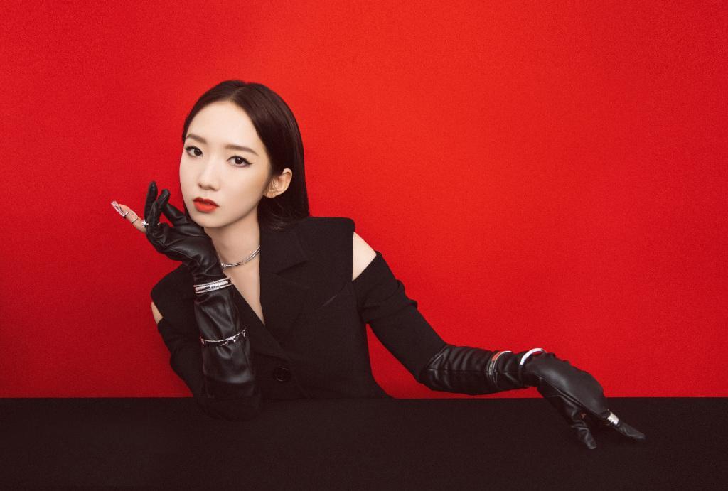 要说黑色那绝对是每个人都很适合的百搭色,但是怎么从每个人都适合的百搭色中穿出一种个性感也算是一种学问。但是孟美岐的这个造型最大的一个特点就在于一大片的黑色用一个红唇加以点缀,妆容只管精致,配上一个高挑的眼线就足够吸引观众的眼球。