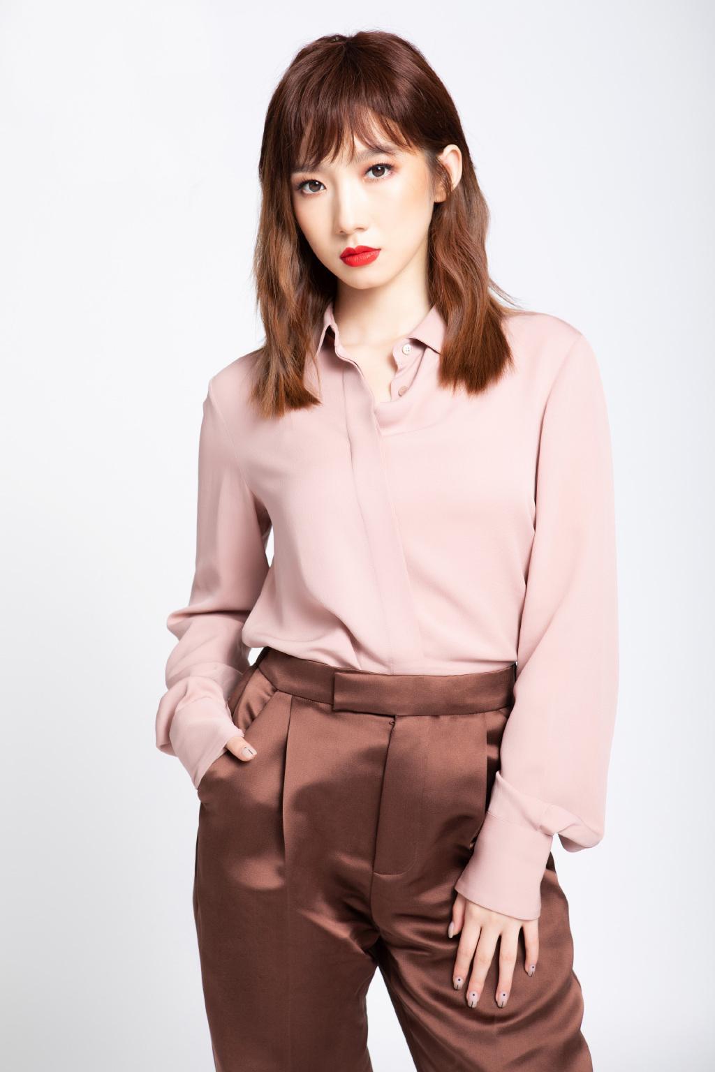 藕粉色的真丝衬衫配上酒红色的西装裤倒是完美的凸显了孟美岐的肤白,而且从她选秀到现如今的多个造型中可以看出孟美岐是真的很适合穿西装,越是简单的穿搭就越能凸显她的御姐气质。