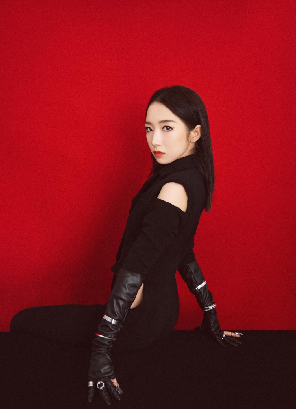 紧身的黑色完美地勾勒出了身材的曲线,比起之前比赛时候的那身紫粉色露马甲线的套装这一身黑反而更具震慑力,简单又不失大气的款式配上一抹精致的红唇,往那一站便已经具备了让后面的学员们叫一声“前辈”的气势。