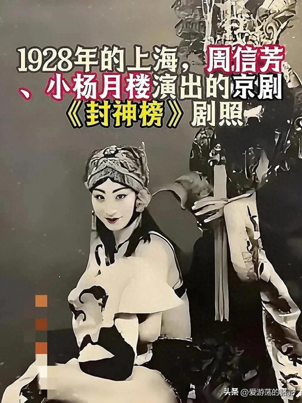 1931年,京剧《封神榜》在上海火爆,小杨月楼饰演的妲己扮相绝美,表演大胆,一边唱一边脱,引发观众疯狂叫好。有人认为演绎过于狐媚,他回应称演狐狸精本就该如此。小杨月楼,男性,本名杨慧侬,是南派伶王,多才多艺,尤其以《封神榜》中的妲己最为出名,其表演“皓肤玉面、媚眼如波”,场场爆满,观众热情极高,即使剧场进水也坚持看完。