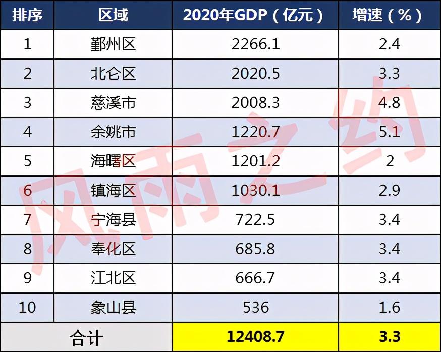 宁波各区县GDP:鄞州区2266亿,余姚市1220亿