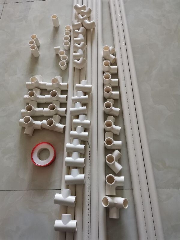 2.20的pvc管子,配件,什么立体三通,立体四通,平面三通,90度弯头,还买了生料带,主要是怕不紧(其实考虑多余了)