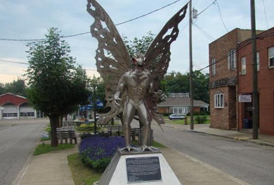 美国西弗吉尼亚州的波因特普莱森特,这是一个位于新西兰坎特伯雷南部的乡村小镇,在这个地方有一个非常吸引人的东西,或者说是一个十分独特的景点就是天蛾人雕像。为什么一个小镇上会有如此奇怪的雕像呢?因为这个小镇正是天蛾人目击事件发生最频繁的一个地方。