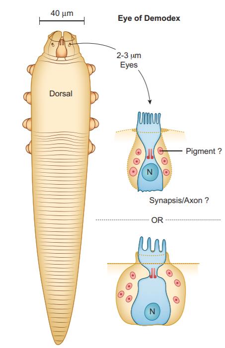 ▲毛囊蠕形螨的眼睛(图片来源:参考资料[2])