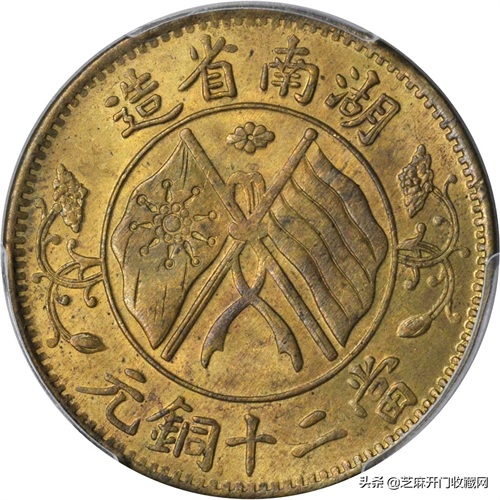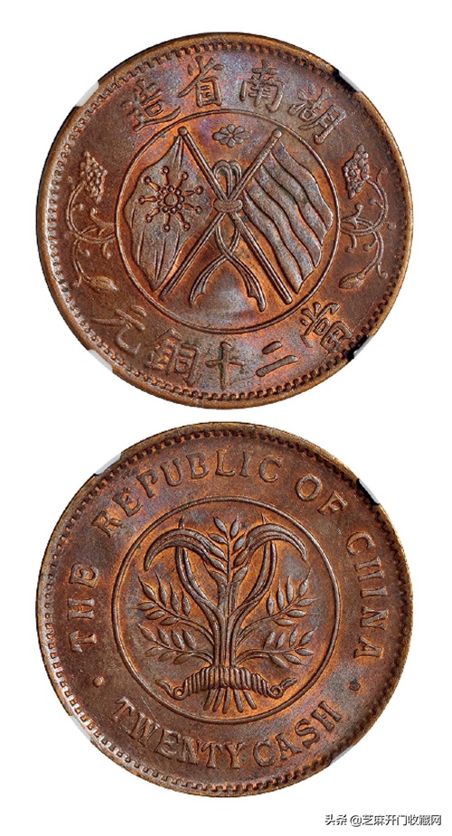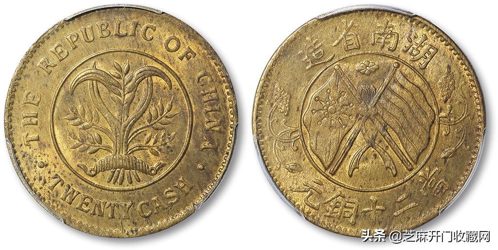 湖南省造双旗嘉禾当二十背TWENTY CASH PCGS MS 64,估价: USD 300 - 500,成交价格:USD 1200