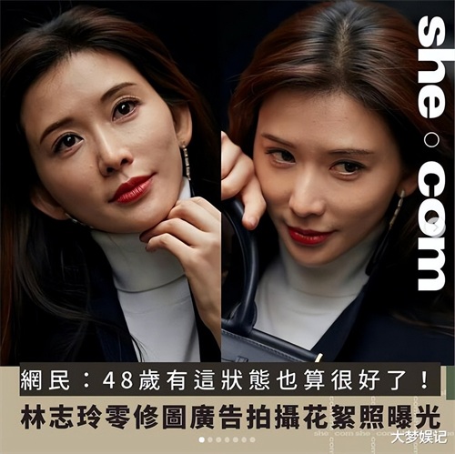 林志玲近日拍摄广告,被公开一组无修图的照片,只见她虽然化妆,但妆容并不是非常服帖,脸上的细小纹路和肤况被拍得一清二楚,只是优雅气质依旧令人赞叹,不少网友纷纷表示“林志玲的样貌其实好有吸引力,不一定年轻就是美”、“48岁这种状态已经很厉害了”、“这种模样已经比8成素人好太多了”。