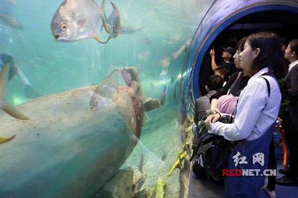 红网长沙10月1日讯(记者 邓晓娟)色彩鲜艳的热带鱼、憨态可掬的海狮、霸气十足的北极狼。今天,首创情景式互动的长沙海立方海洋公园正式开业,国庆期间小朋友们又多了个游玩的好去处。