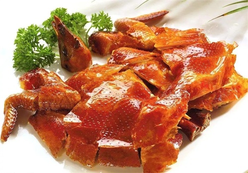 香酥鸡,崇阳风味名菜之一,所选食材为嫩母鸡,用刀背将鸡翅膀和大腿骨砸断,使骨断肉连,将少许精盐、酱油、味精、色酒混合一起,揉抹在鸡身上,将葱白、姜块、五香料塞进鸡腹中,腌三到四小时后,上笼蒸烂,拣出鸡内各种佐料,凉干水分,再将鸡抹上蛋清糊,放入油锅炸成金黄色,然后用刀剁成大块,摆入盘内即成。崇阳香酥鸡颜色金黄,皮烂酥软,肉味香醇,肥而不腻,深受本地以及外地游客的喜爱。