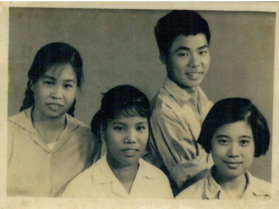1965年西山插青(左起)颜丽娥、饶忠蕴、钟洁芬、黄健梅与大队副业队女青年合照