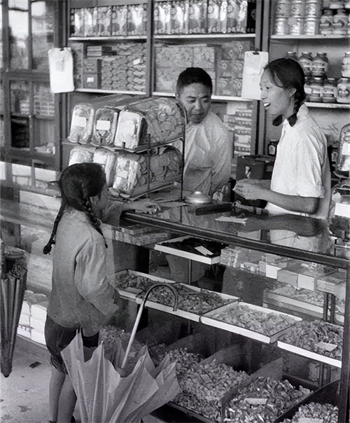 童年去供销社买糖的场景,而且我最喜欢的就是闻供销社里糖,酒,酱油混合在一起的味道,特别的喜欢闻,现在是闻不到了。
