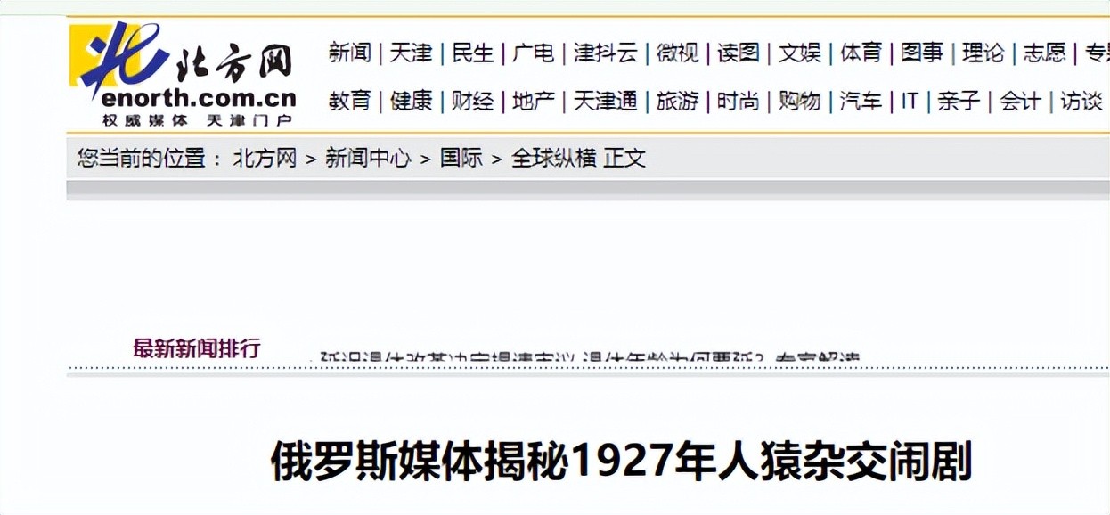 信息来源:北方网,俄罗斯媒体揭秘1927年人猿杂交闹剧