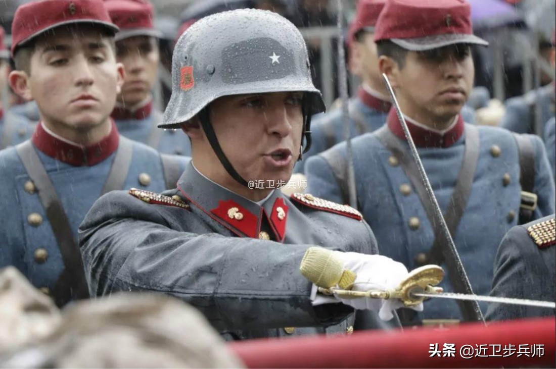 这里更要引出智利军队,其军服样式中也有采用了红领章。网上传言说,智利的军服和纳粹很像,其实智利模仿的不是纳粹德军,而是因为从1885年开始聘请德国军事顾问,学习德意志第二帝国的军队,而形成了这种风格的军服和头盔。