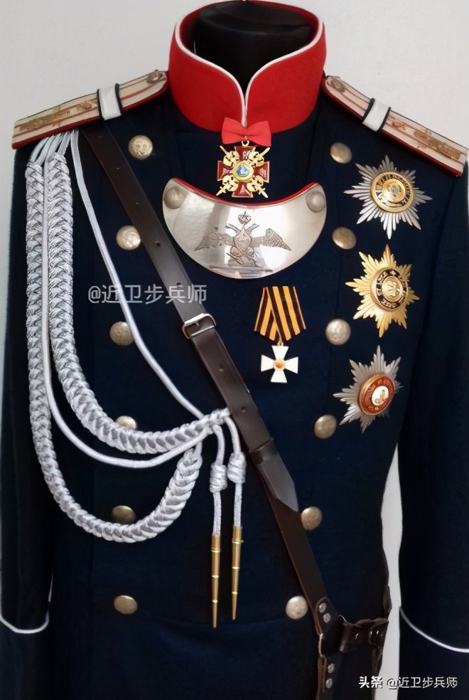 很遗憾,和1943年样式的苏军军服一样,大量参考了沙俄军服的设计,比如沙皇副官的一种军服,也是红色衣领。
