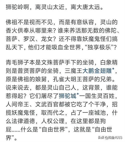 2.西游世界出了大唐地界,离西天越近妖魔吃人越猖獗,佛门后台越大。在大唐下个雨尺寸错了,剐龙台上走一遭,在西天妖魔直接吃空一座城,建立狮驼国,回头屁事没有,人家又回极乐世界坐莲台去了。