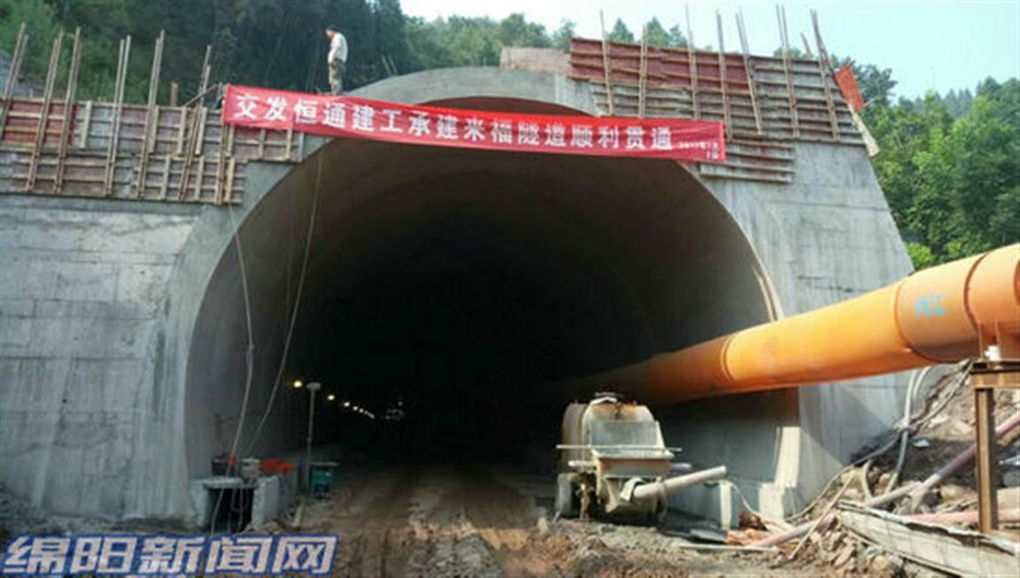 三台首条公路隧道“来福隧道”贯通