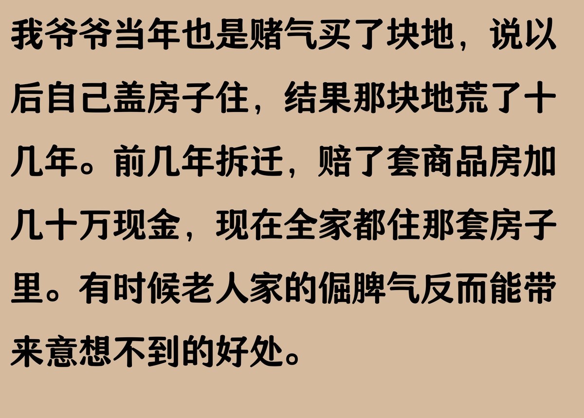 分人吧!我公公是个特别较真的人,20年前我妈随口说了句"你家那老房子能住人吗",他就赌气把老房子翻修了一遍。当时大家都说他小题大做,结果去年地震,就他家那栋翻修过的老房子没事,其他邻居家的老房子都塌了。现在想想,要不是他当年赌气翻修,现在可能命都没了。