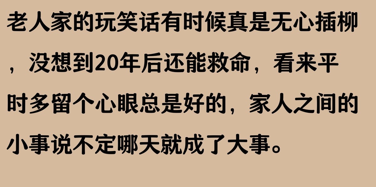 99年,我妈开了句玩笑,公公赌气做件事,没想到20年后救了他的命