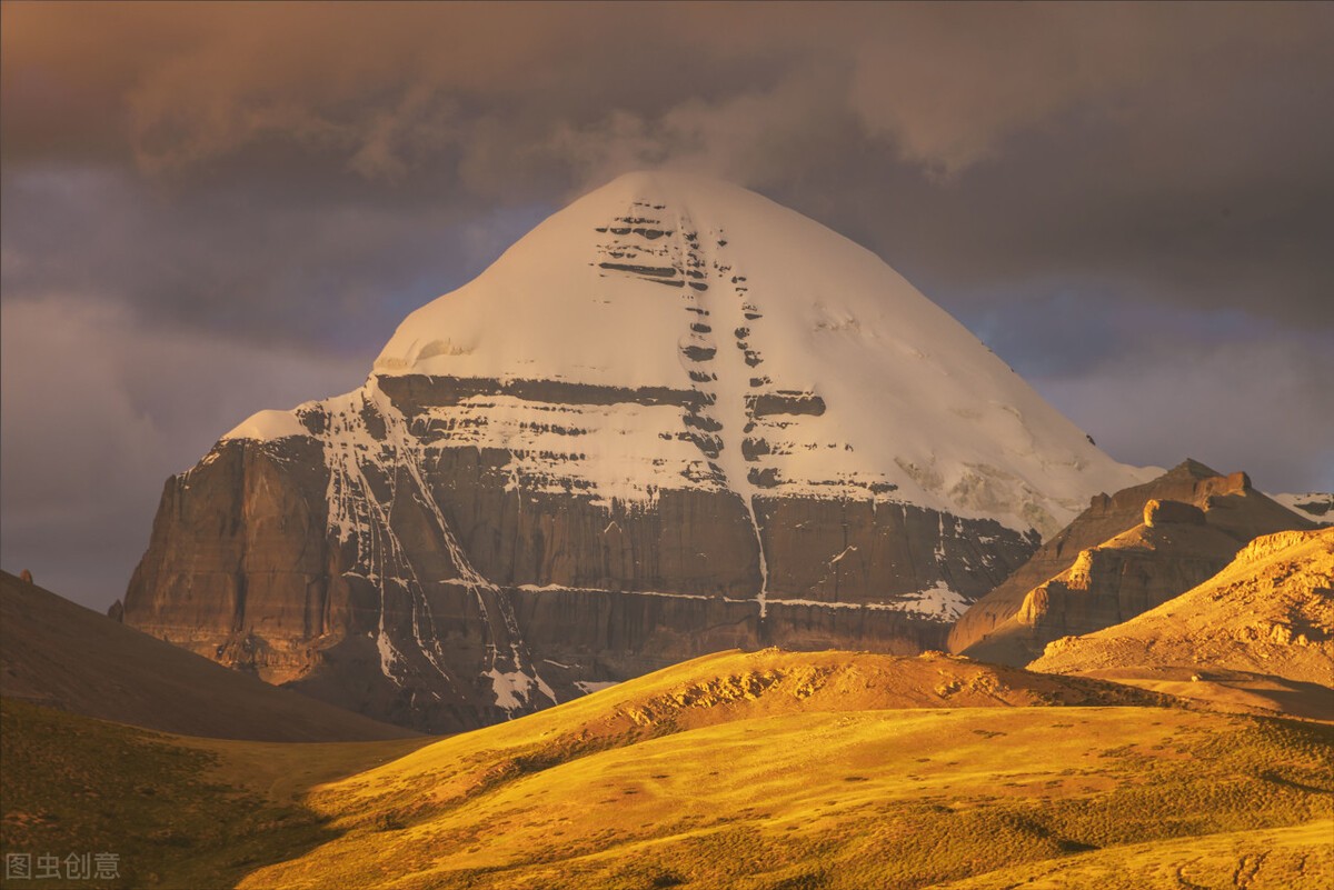 “神山”指的是冈仁波齐。冈仁波齐是冈底斯山脉的主峰,它是苯教、佛教,印度教,耆那教四个宗教所认定的世界中心,虽然它的海拔只有6656米,但是阿里地区的四大圣河均发源于冈仁波齐,因此它被称为“万流之源”。而且它的造型很独特,看上去像一个“弹头”的形状,山体的中心有一处纵向的巨大凹槽,和水平的纹理岩层结合起来,看上去就像神秘的宗教标志。