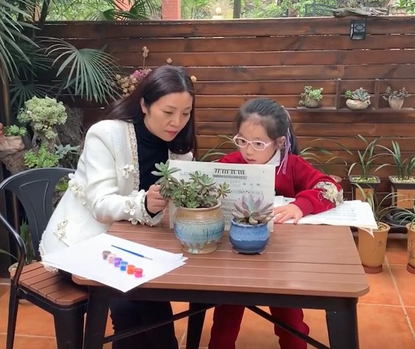 (李丹阳辅导女儿作业)