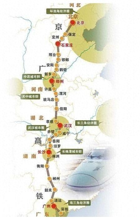 让我们先来看看京广高铁的整体布局。从北到南,它几乎跨越了中国的整个中部地区,连接了京津冀、中原和珠三角三大经济区。这样的布局,无疑为沿线城市带来了巨大的发展机遇。北京作为首都,其政治、经济、文化的辐射力通过京广高铁得到了进一步的延伸。而石家庄、郑州、武汉、长沙等城市,则借助高铁的便利,加速了与北京、广州等一线城市的互动和合作。