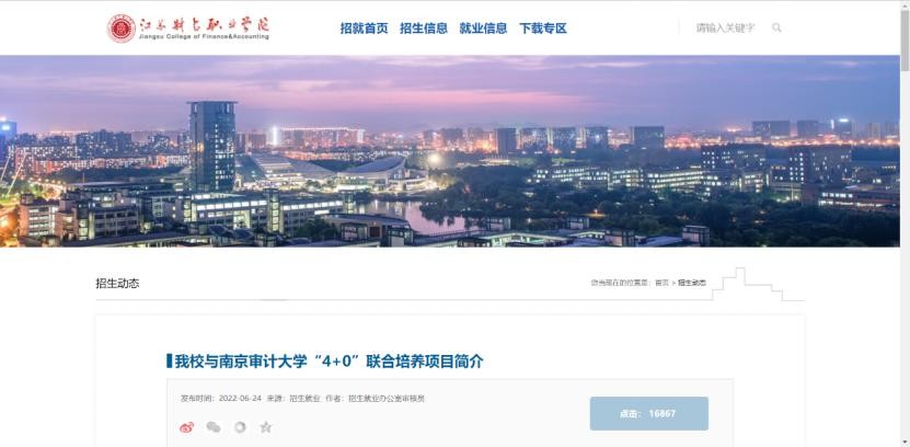 江苏财会职业学院“4+0”联合培养项目宣传 图源/江苏财会职业学院官网