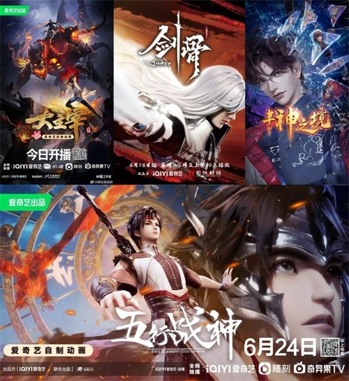爱奇艺高能工作室和幻维数码联合制作、爱奇艺出品的3D动画年番《大主宰》的续篇《大主宰九域大会篇》,目前爱奇艺站内热度2798,位列动漫热播榜第4名;《剑骨第一季(下)》由爱奇艺、索以文化共同出品;《五行战神第一季(下)》由若鸿文化和爱奇艺联合出品;《半神之境(上篇)》动画则由爱奇艺与中南卡通联合出品。