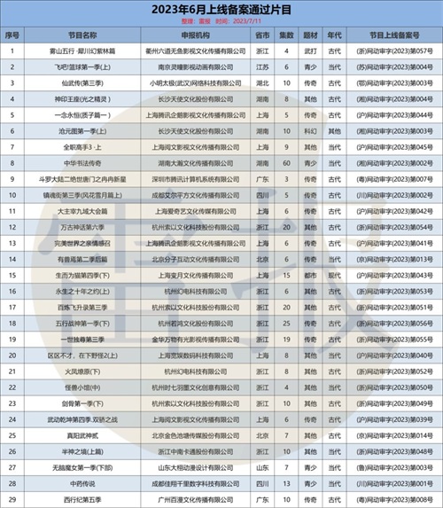 29部动画通过6月网络动画上线备案片目,数部新作于6月、7月开播