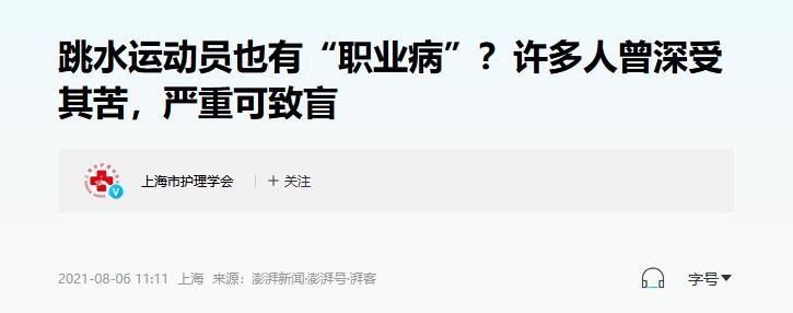 澎湃新闻账号“上海市护理学会”2021.8.6《跳水运动员也有“职业病”?许多人曾深受其苦,严重可致盲》