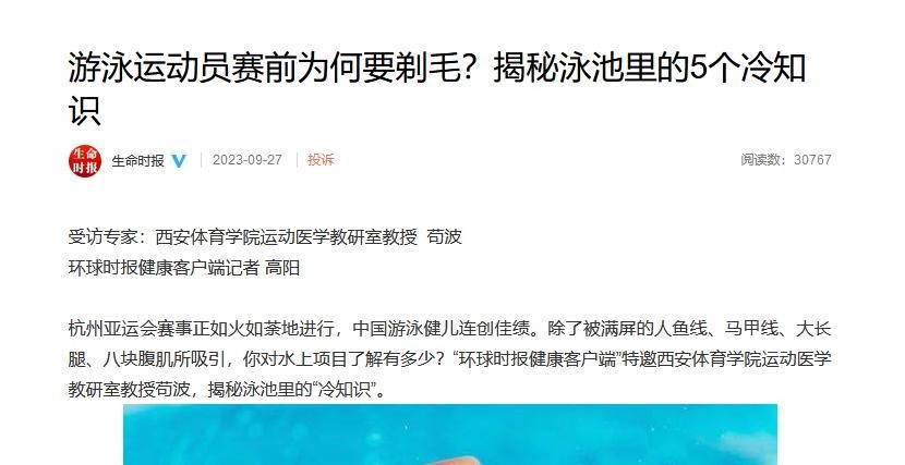生命时报2024.9.27《游泳运动员赛前为何要剃毛?揭秘泳池里的5个冷知识》