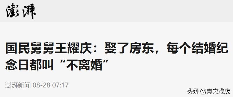 澎湃新闻《国民舅舅王耀庆:娶了房东,每个结婚纪念日都叫“不离婚”》