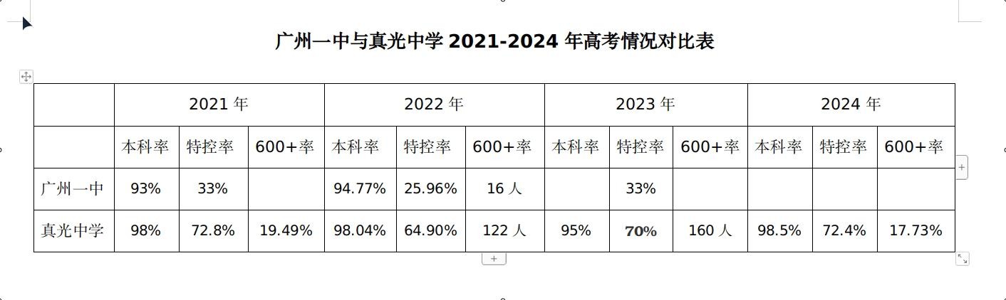 由此可见,最具代表性的本科率、特控率、600+率(人数),真光中学均远远将广州一中甩在后面,实事求是地说,两校根本不在一个层次。