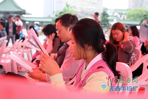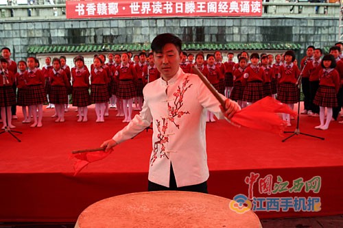 “书香赣鄱·世界读书日经典诵读”是今年我省全民阅读宣传月精心打造的重点内容,主办方除了在滕王阁举办诵读活动外,还联合全省各设区市,在瑞金的苏维埃旧址、井冈山的八角楼、九江的白鹿洞书院、上饶的婺源和鹅湖书院等地相继举办经典诵读活动,形成浓厚的阅读氛围。