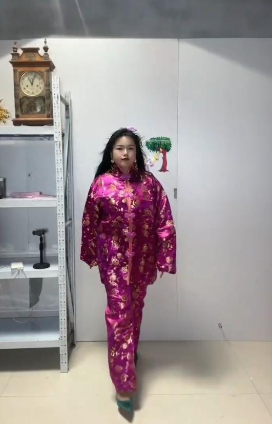 朱女士结婚 5 年,其丈夫是寿衣供货商,朱女士从事寿衣行业也已有五年左右时间,拍摄视频近一年。起初,朱女士只是向大家展示样式," 有很多老人感觉我家衣服好看,想要购买,也想看更多款式。" 为了给买家展示产品,朱女士第一次穿上寿衣成为 " 寿衣模特 "。朱女士表示,刚开始接触的时候,内心是有点害怕的,但因为家里货物较多," 当它达到一定数量以后,看着也就不怕了。" 朱女士的宝宝目前 2 岁,晚上家人回来以后帮其看孩子,朱女士便可以直播。