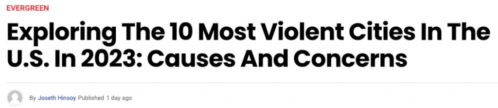 据 southarkansassun 1 月 22 日报道 在广袤的美国大地上,不同城市的暴力问题呈现出不同的形式。本文利用可靠来源的数据,深入分析得出了 2023 年最暴力的 10 个城市。