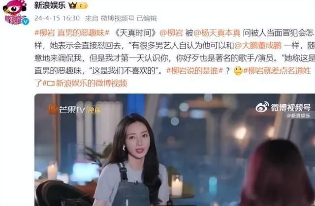 访谈中,面对主持人杨天真的提问——遭遇当面冒犯如何应对,柳岩直言不讳:" 我会立即反击。" 她补充道,许多男艺人误以为能像大鹏那样随意调侃她,但她与大鹏之间互相调侃是因为两人很熟,而且是为了电影宣传。" 但我不认识你啊大哥!你好歹也是著名的歌手 / 演员!"