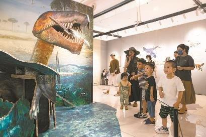 本报讯(记者 钟菡)“恐龙复活记——重返恐龙时代互动体验展”昨天在上海市群众艺术馆开展。展览对立体书《如何复活一只恐龙》进行演绎、延伸和组合设计,面向市民特别是放暑假的孩子解读恐龙的奥秘。由环保代木材料拼搭而成的恐龙世界,让观众仿佛闯入书中实景。展览将持续至9月10日。1993年上映的电影《侏罗纪公园》里,恐龙还是直立的凶型猛兽,到2015年的《侏罗纪世界》变成弯下腰的爬行动物,这是为什么?“恐龙复活记——重返恐龙时代互动体验展”通过图文介绍、模型展示、场景复原等方式,呈现恐龙“复活”全过程。由于更多新化石被发现,科学家们研究进一步深入,修正了恐龙的姿态。展览以有着超长背部神经的棘龙为例,讲述科学家们如何接力考证恐龙化石,不断修正、还原棘龙,制成我们现在能在博物馆中看到的标本。除了“复活”一只完整的恐龙外,展厅地板上有一个巨大的恐龙脚印,科学家曾用复步长与臀高计算出恐龙的运动速度,测算出白垩纪最末期的暴龙极可能是恐龙中的“跑步冠军”。科普立体书《如何复活一只恐龙》由上海科技馆从事教育理论研究与实践的团队王俊卿、张维贇、胡玺丹、包李君创作,上海海派连环画中心出版。展览期间,讲解志愿者每天在展厅服务。