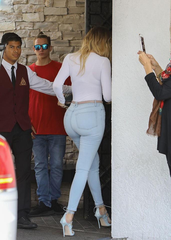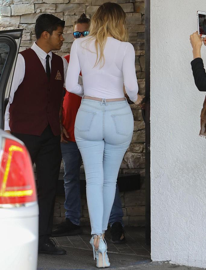 这是科勒·卡戴珊出席活动时候被拍的照片,我们可以清晰的看到科勒·卡戴珊全身穿的衣服都超紧。但是这条牛仔裤确实太耀眼,为她赚足了眼球,也确实,不是谁都可以穿出这样的效果的!