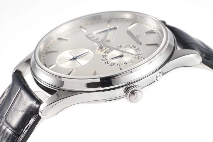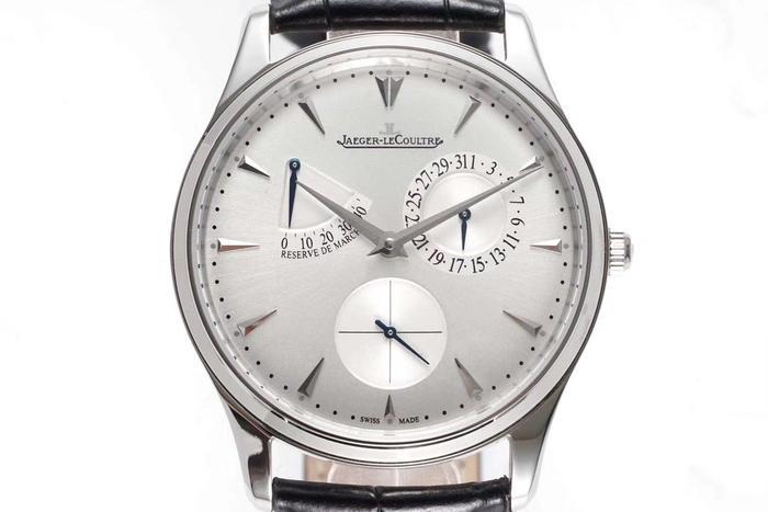 积家超薄大师1378420腕表采用精钢材质打造,整体银色光泽显得十分具有金属质感,在两点钟六点钟和十点钟分别是日期显示、小秒盘以及动能显示窗。精妙的设计让表盘更加具有现代感。搭载积家自产273自动上链机芯也保证了腕表精准的走时。不论是休闲还是职场,都是非常适合的款式。