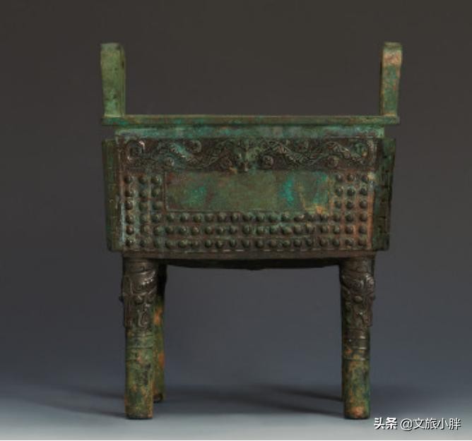 此鼎鼎身四壁近口沿处各装饰一首双身蛇,即中国古代神话传说中的“肥遗”,左、右及底边处还各装饰有一条乳丁纹带。鼎内还有两处铭文,其中壁上有六行37字的铭文,铭文的大意是:在乙未这一天,商纣王祭祀他的父亲帝乙,属于肜日(一个月的一旬)祭祀。商纣王自管城(即今河南郑州)出发进行祭祀活动,返回时,又进入管城,王赏赐给墉贝。墉以其父亲丁的名义作了这件珍贵的青铜礼器。这些事情都发生在商纣王二十二年的五月。鼎内底亦有一鱼形族徽。依据铭文可知,这件方鼎是由商代贵族墉于商纣王二十二年制作的,其内容涉及商纣王祭祀其父帝乙,其中“文武帝乙”一词是继北京故宫所藏四祀邲其卣之后第二次见诸商代铜器铭文,以充分的证据证实商王帝乙的存在。中国保利集团公司从海外回购,现藏于北京保利艺术博物馆。此鼎保存完整,铸工精良,其铭文多达37字,铭文中详细记述了商纣王的王年、月、日及肜日,时代要素齐全,是十分罕见的商代长篇铜器铭文,可以据此补充排定商代“周祭”的历谱,与之相近的仅有现藏故宫的二祀、四祀、六祀邲其卣等寥寥数器。