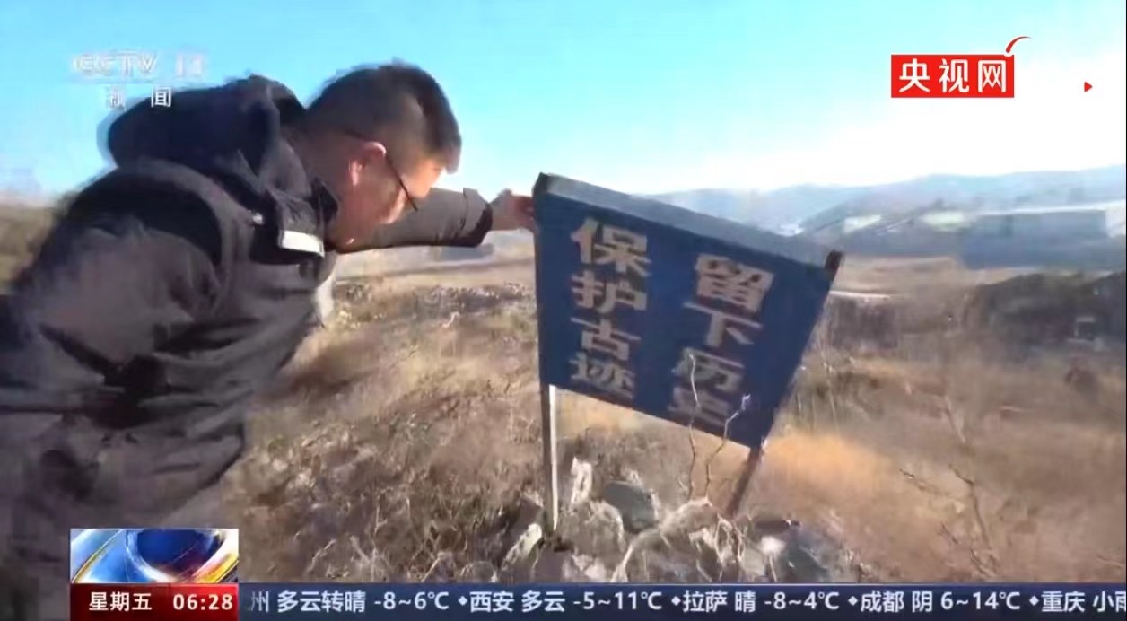 然而这不是什么标注不到位的乌龙事件,工作人员在现场缓缓扶起被开采碎石压住的标语牌,百米开外赫然还有赵长城遗址的纪念碑。都证明相关公司的人员不存在了解不到位的说法。