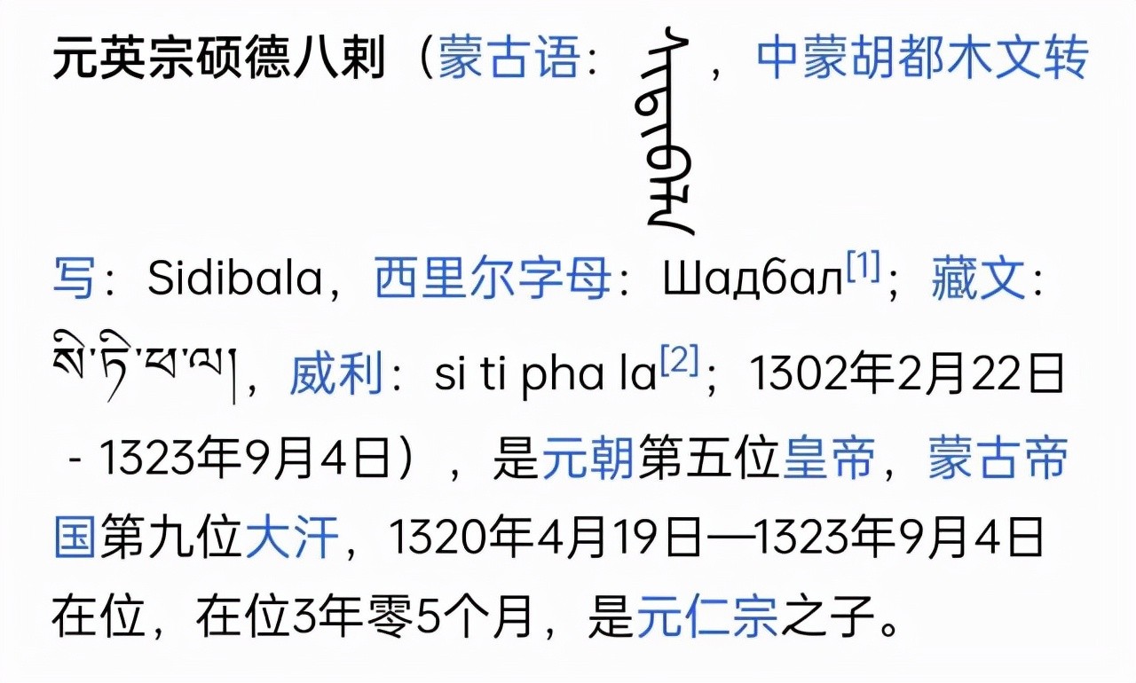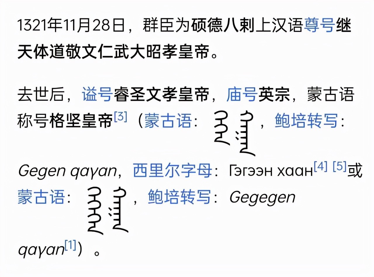 泰定元年农历四月八日(1324年5月1日),元泰定帝为硕德八剌上蒙古文称号“格坚皇帝”。