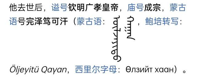 大德十一年九月十一日(1307年10月7日),元武宗为铁穆耳上谥号钦明广孝皇帝,庙号成宗,蒙古语称号完泽笃皇帝。