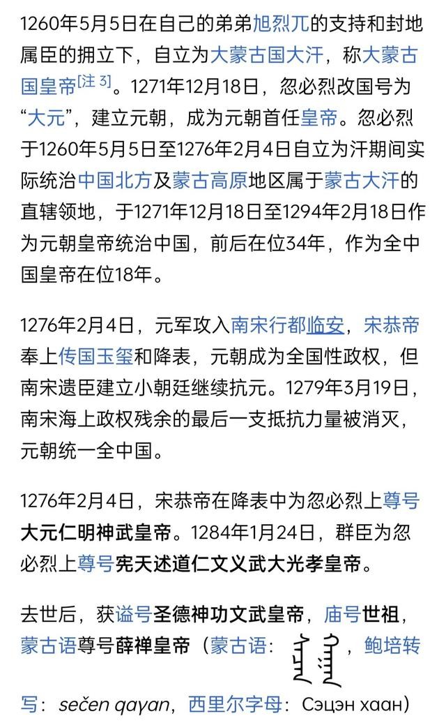 忽必烈赢取汉人接受其统治的第一个措施便是效仿汉人的典章制度,将“大蒙古国”的历史和皇族“汉化”,其中一个显著做法就是建立太庙,按照中原王朝的传统为大蒙古国的历任大汗确立庙号,追尊谥号。