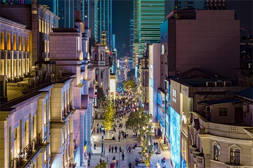 南京路步行街建成于1999年9月20日,东起河南中路,西至西藏中路,全长1033米。