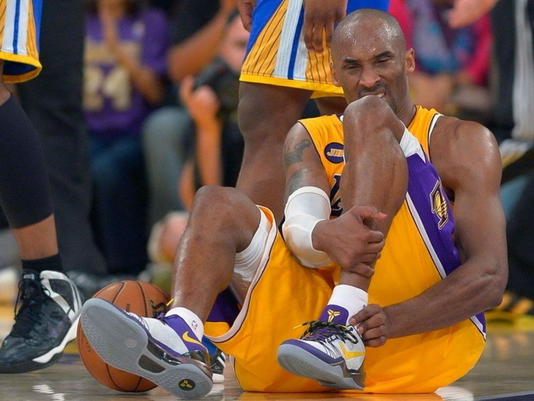 2013 年 4 月 12 日,在对阵勇士的比赛中,影响科比职业生涯的伤病发生了——跟腱断裂。
